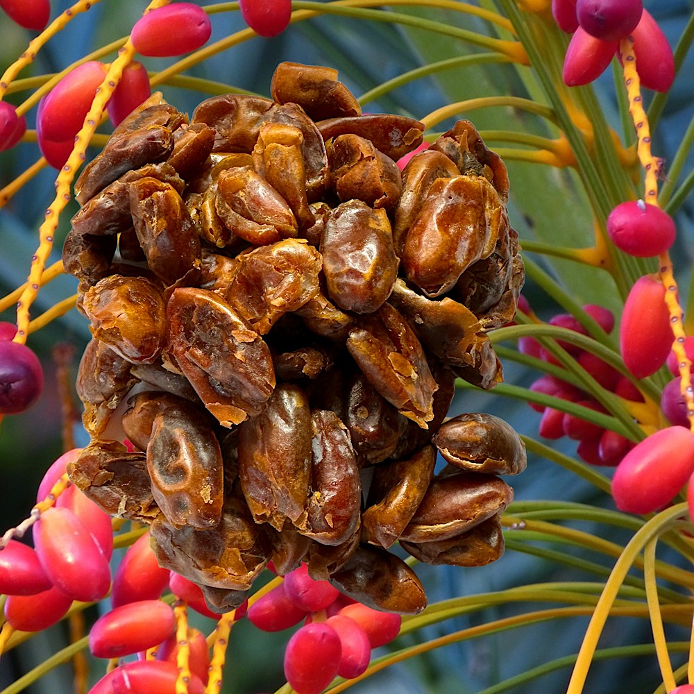 Diese persischen Datteln sind deutlich kleiner als die hochgezüchteten, herkömmliche Datteln. Sie sind auch weniger süß, dabei aber unheimlich aromatisch und zart im Geschmack und absolut nicht klebrig!