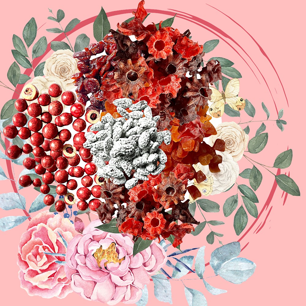 Hibiskusblüten kandiert: Hibiskusblüten, Rohrzucker, Zitronensäure E330, Calciumchlorid E 509
