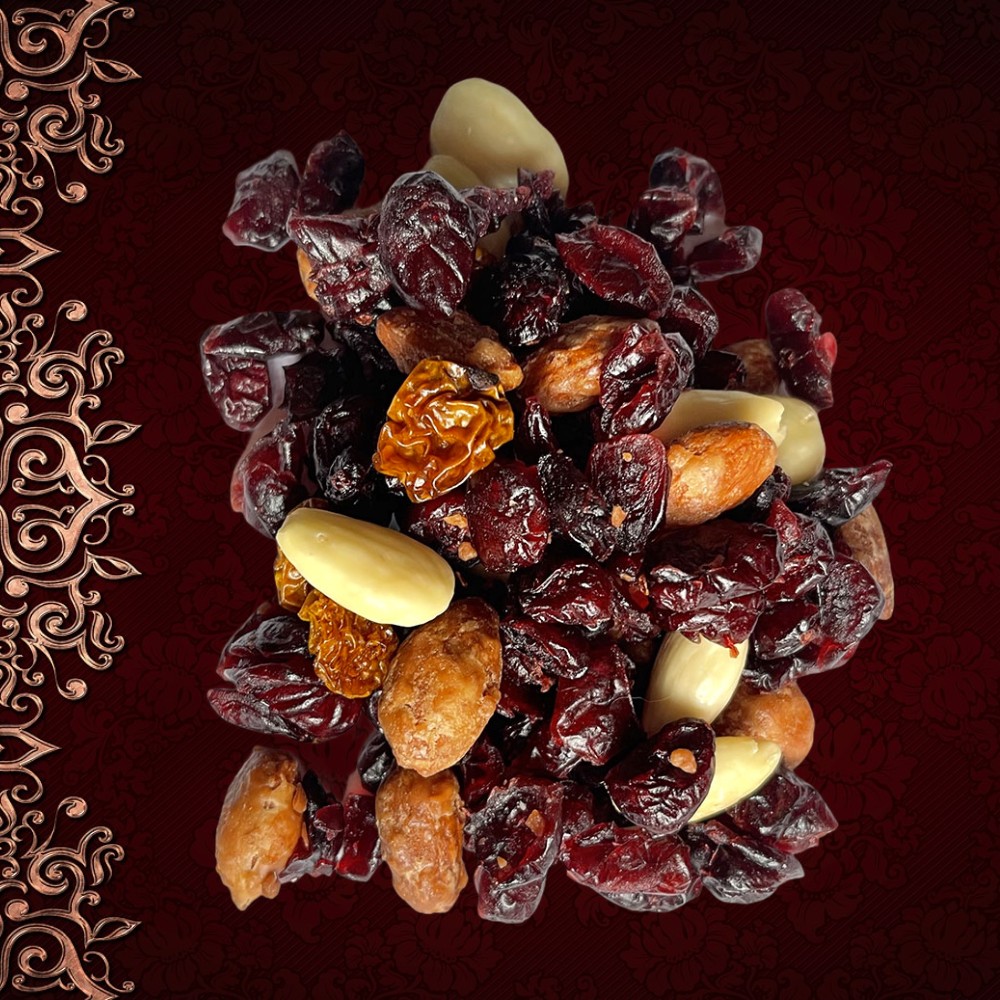 Diese Mischung ist einfach genial – ob Stück für Stück oder im Ganzen ein Erlebnis für die Sinne! Karamell-Mandeln, blanchierte Mandeln, Physalis und Cranberries.